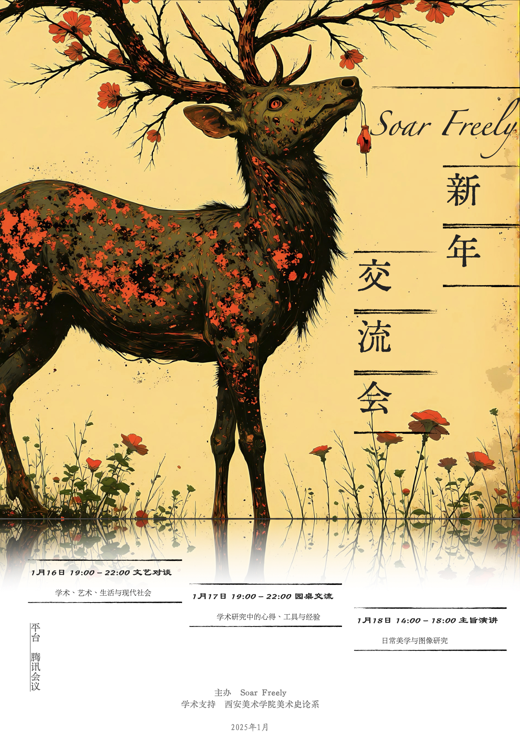 不论学界、业界还是日常生活,会议并非一个罕见词汇。然而大多数会议往往是专家学者或上司领导的「一言堂」,发声者为未发声者「代言」。因此,Soar Freely 新年交流会希望能够建立一个友好的交流平台:一个没有繁文缛节的天地,欢迎来自不同地域、具有不同背景的朋友们畅所欲言,分享自己的生活、经历乃至人生。因此,从园桌交流、文艺对谈,乃至主旨演讲,Soar Freely 新年交流会都不会设置具体议题,而是以宽广的概念引领交流自由发展,从而实现「思想的游牧」。